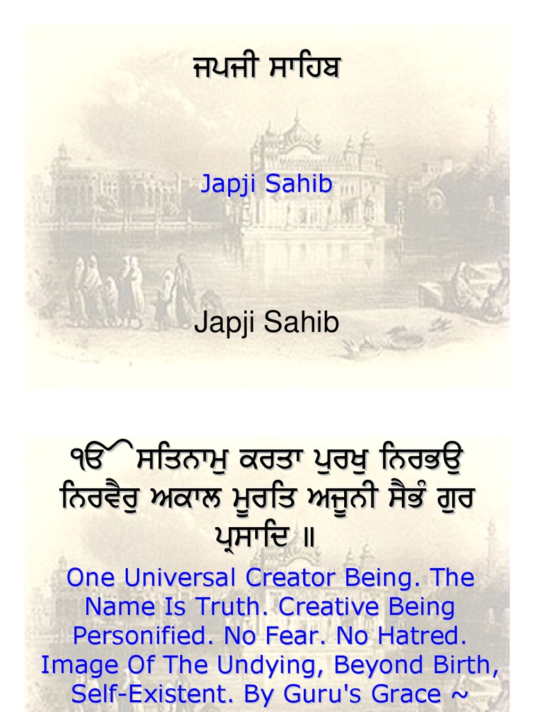 Web At the end of the translation I have also offered to you the Transliteration of JAPJI. This precious gift was given to us by Guru Nanak.